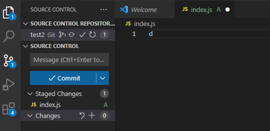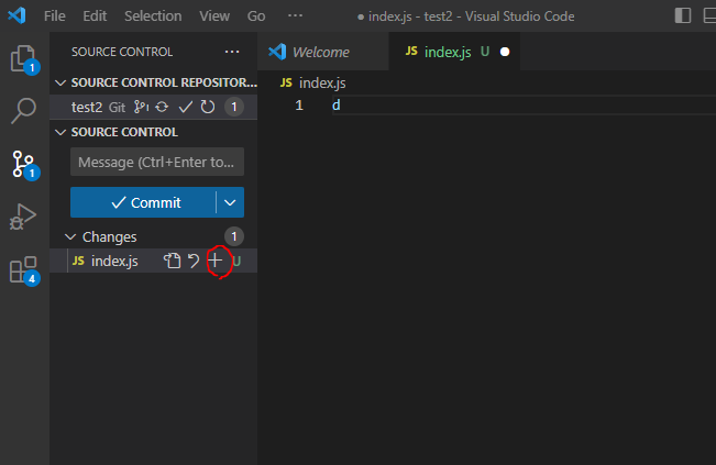 그리고, git이모티콘을 클릭하면 아래와 같은 화면이 뜨고 + 버튼을 눌러준다. 스테이지에 올려준다.