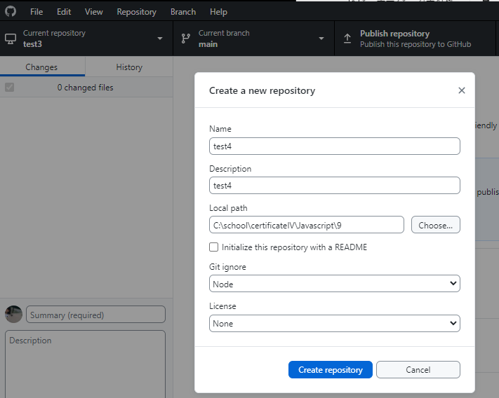 5)이름을 test4라고 해서 만들어준다. 그리고 github웹사이트에 내가 만든test4레포지토리 있는지 확인한다.