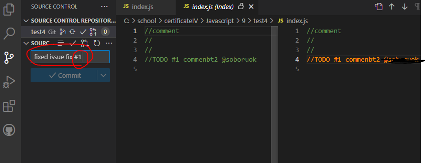 5. issue을 수정했을때, commit할 내용에 #1(Issue가 다 수정이 되었다는 듯) 꼭 넣어서 저장하고 깃허브에 올려준다.